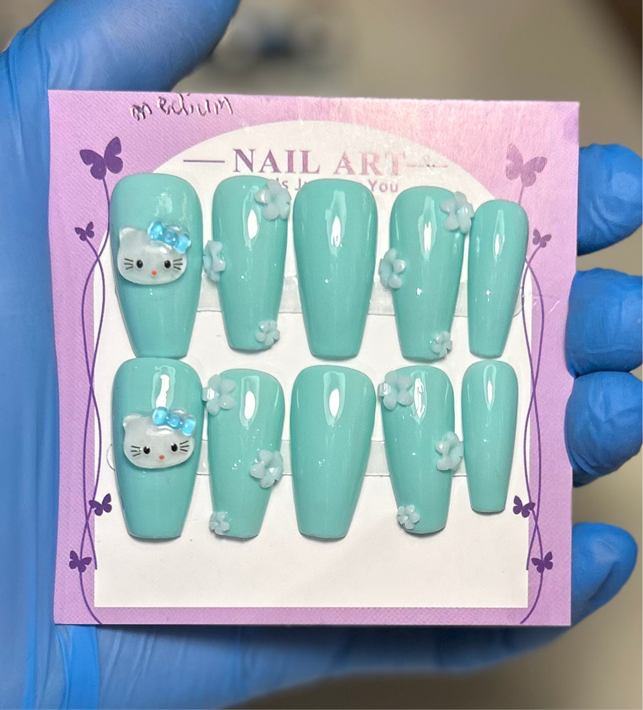 Step into sweetness with Blue Blossom Kitty, a dreamy press-on nail set inspired by soft pastels and delicate florals. Featuring charming blue bows, tiny blossoms, and a touch of kitty-cute magic, this set is perfect for anyone who loves girly, playful, and whimsical styles. 🩵🐱